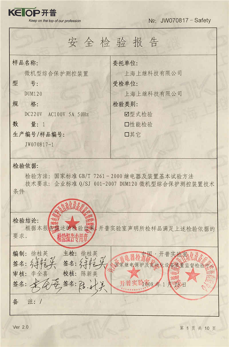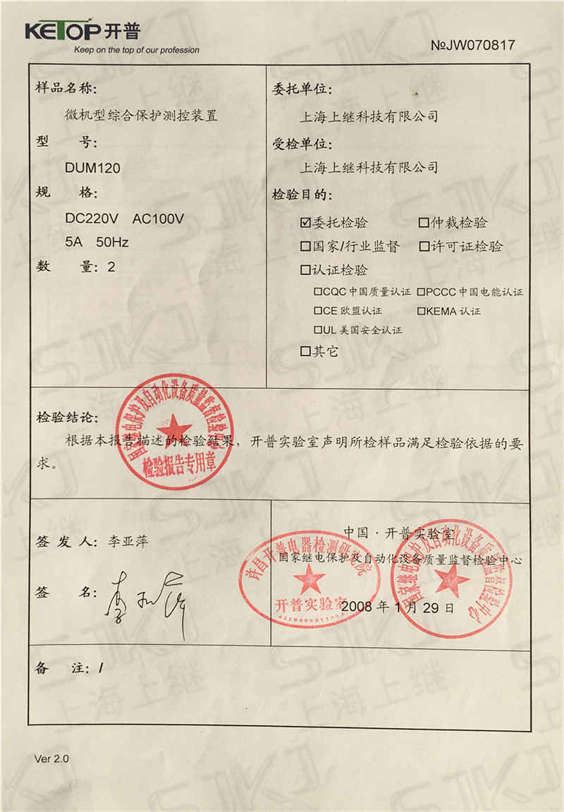 您現(xiàn)在的位置: 首頁 >> 客戶服務(wù) >> 資質(zhì)證書 > DUM120檢驗(yàn)報(bào)告