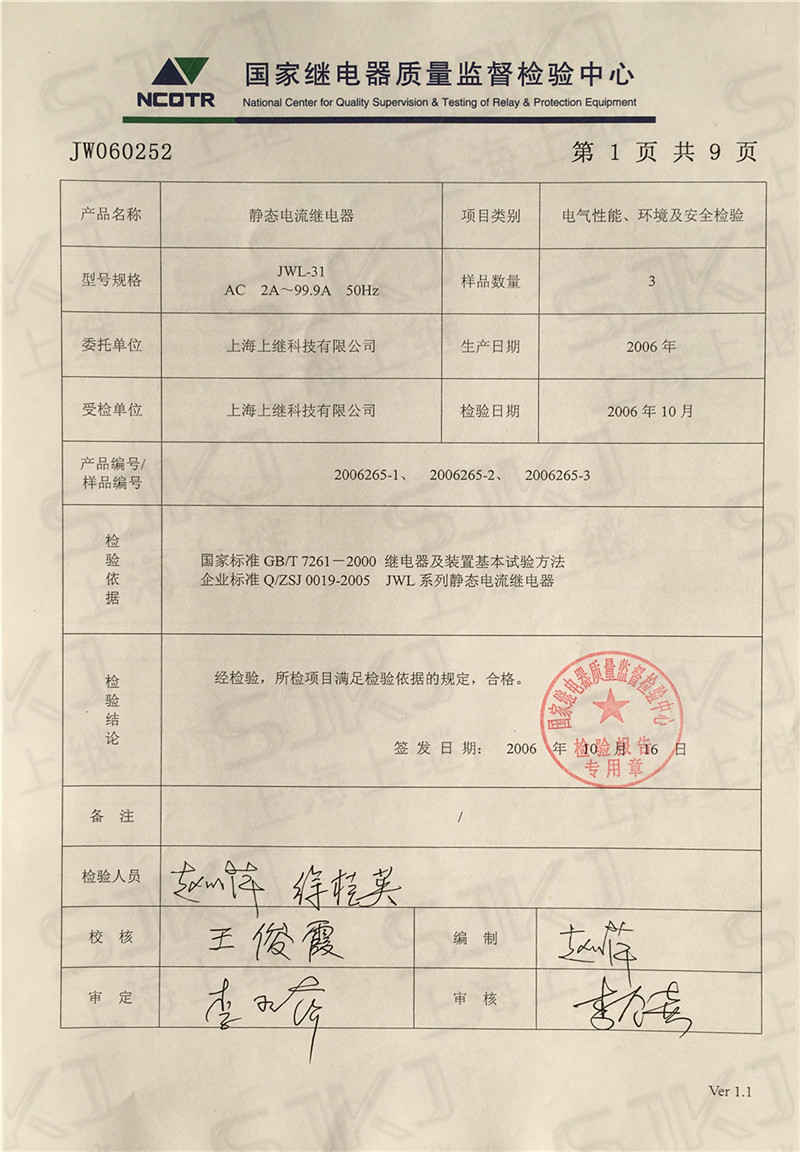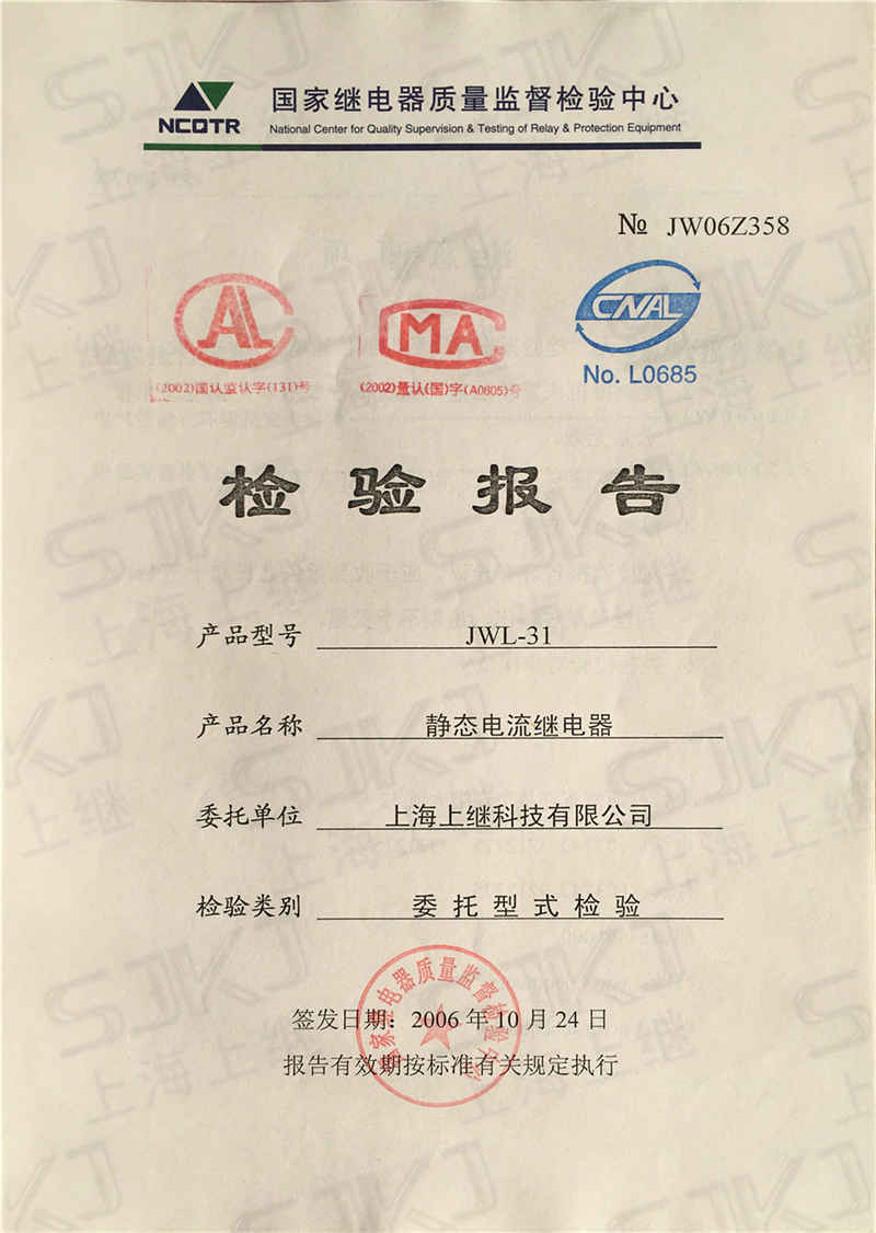 您現在的位置: 首頁 >> 客戶服務 >> 資質證書 > JWL-31檢驗報告