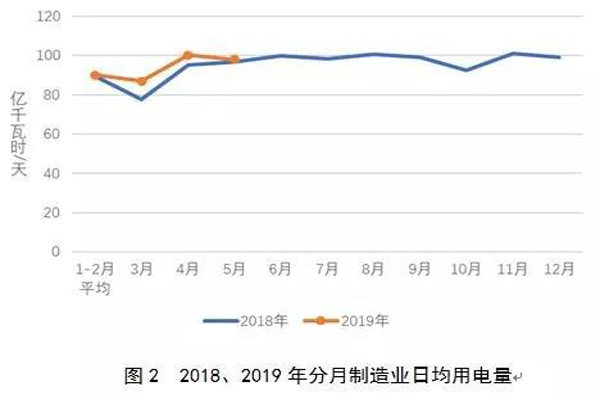 圖3 2018、2019年重點行業分月用電量情況